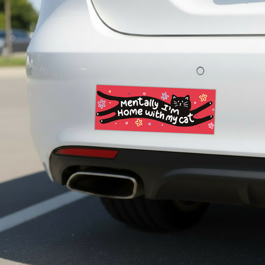 Mentally I'm Home With My Cat | Funny Car Magnet
