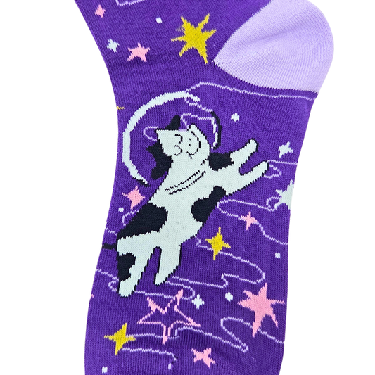 I Pooped Today Cow Space Socks - Women's Funny Crew Socks